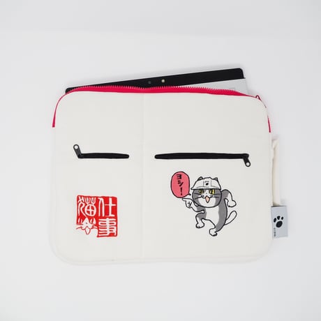 仕事猫が両面に刺繍されたかわいいPCケースが登場!