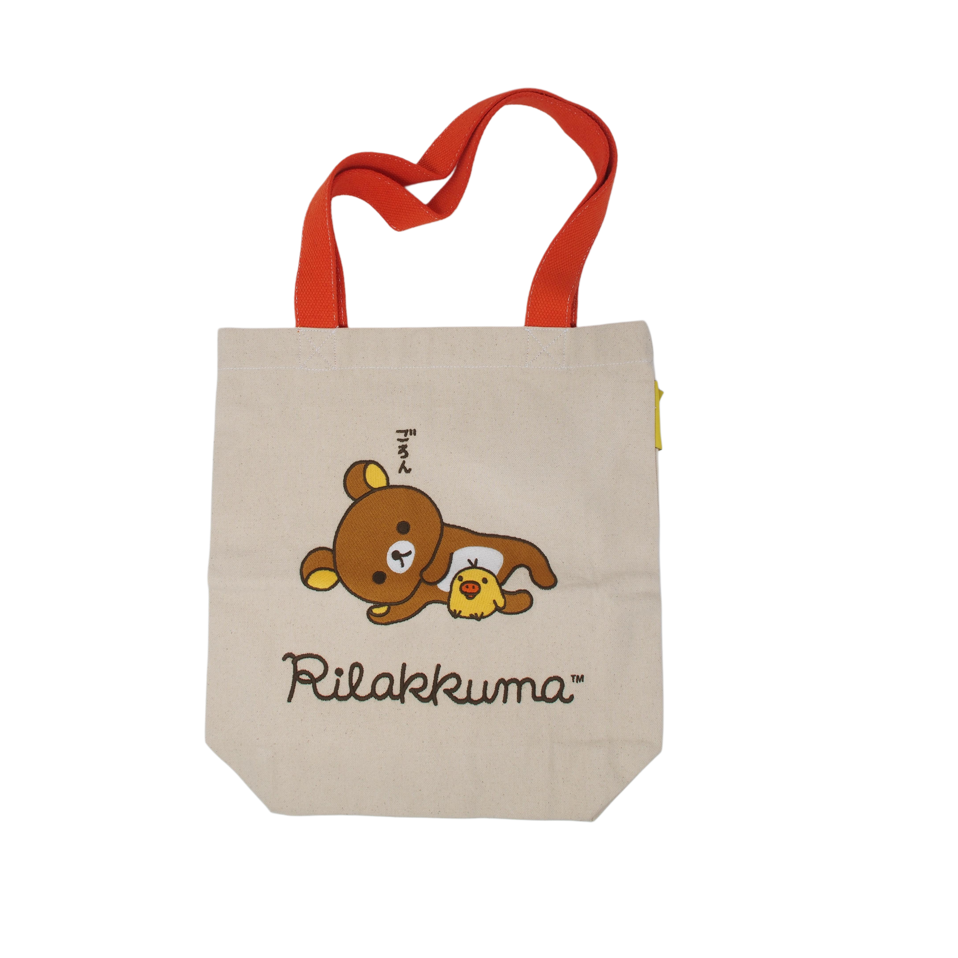 ごろんと寝転ぶリラックマと、そっと寄り添うキイロイトリがとっても愛らしいトートバッグ♪