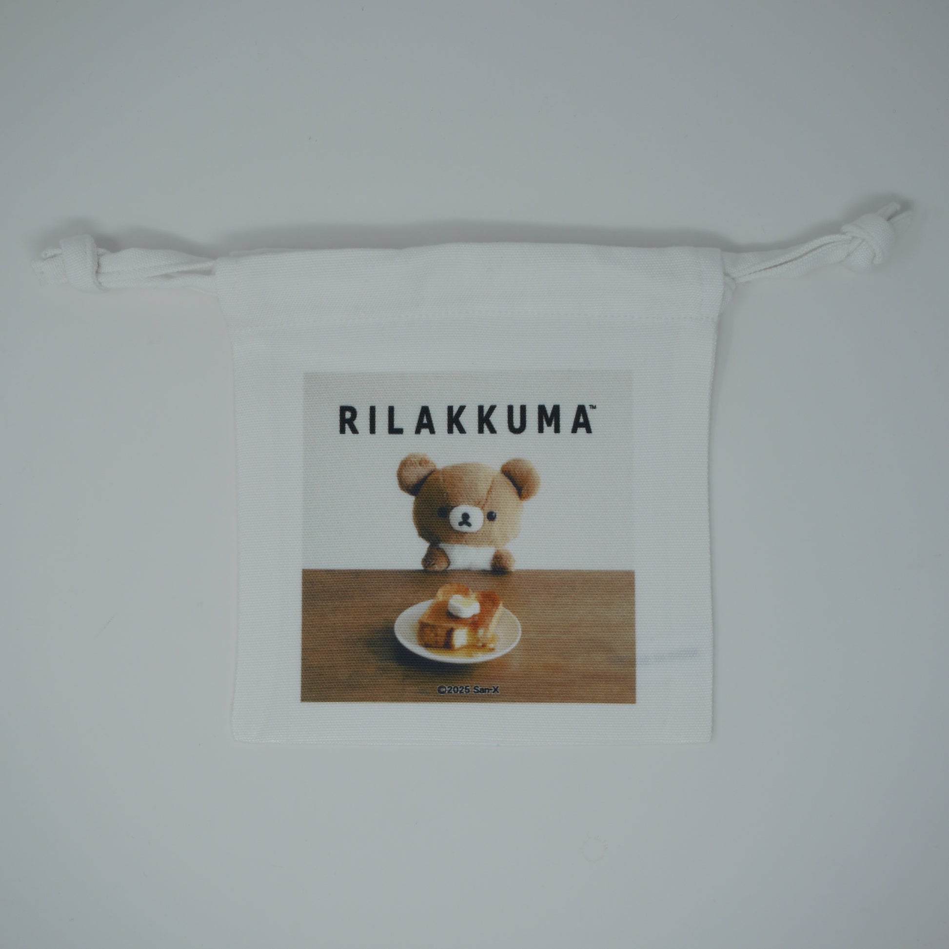 パンケーキを前にちょこんと座るチャイロイコグマがプリントされた、とってもキュートな巾着袋♡