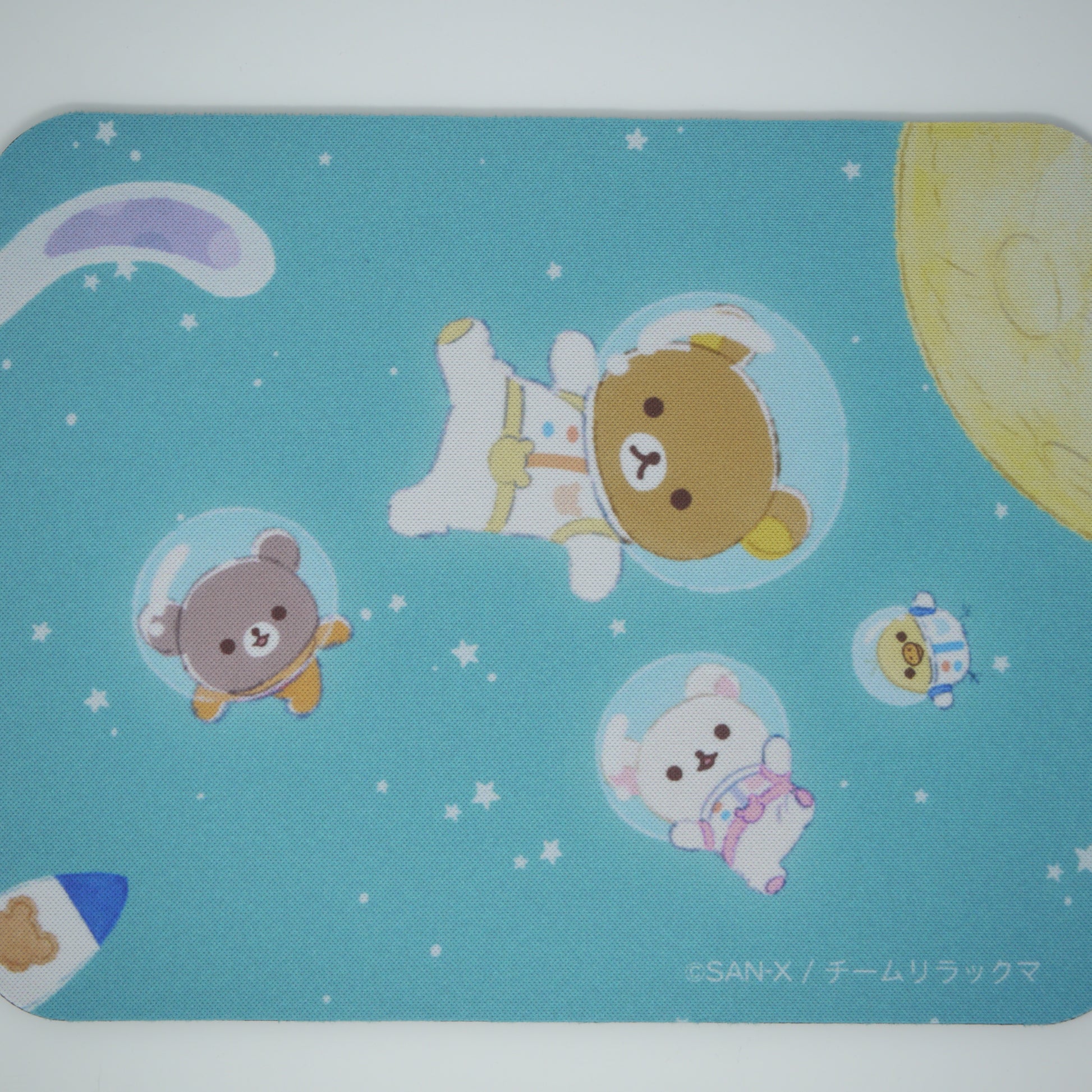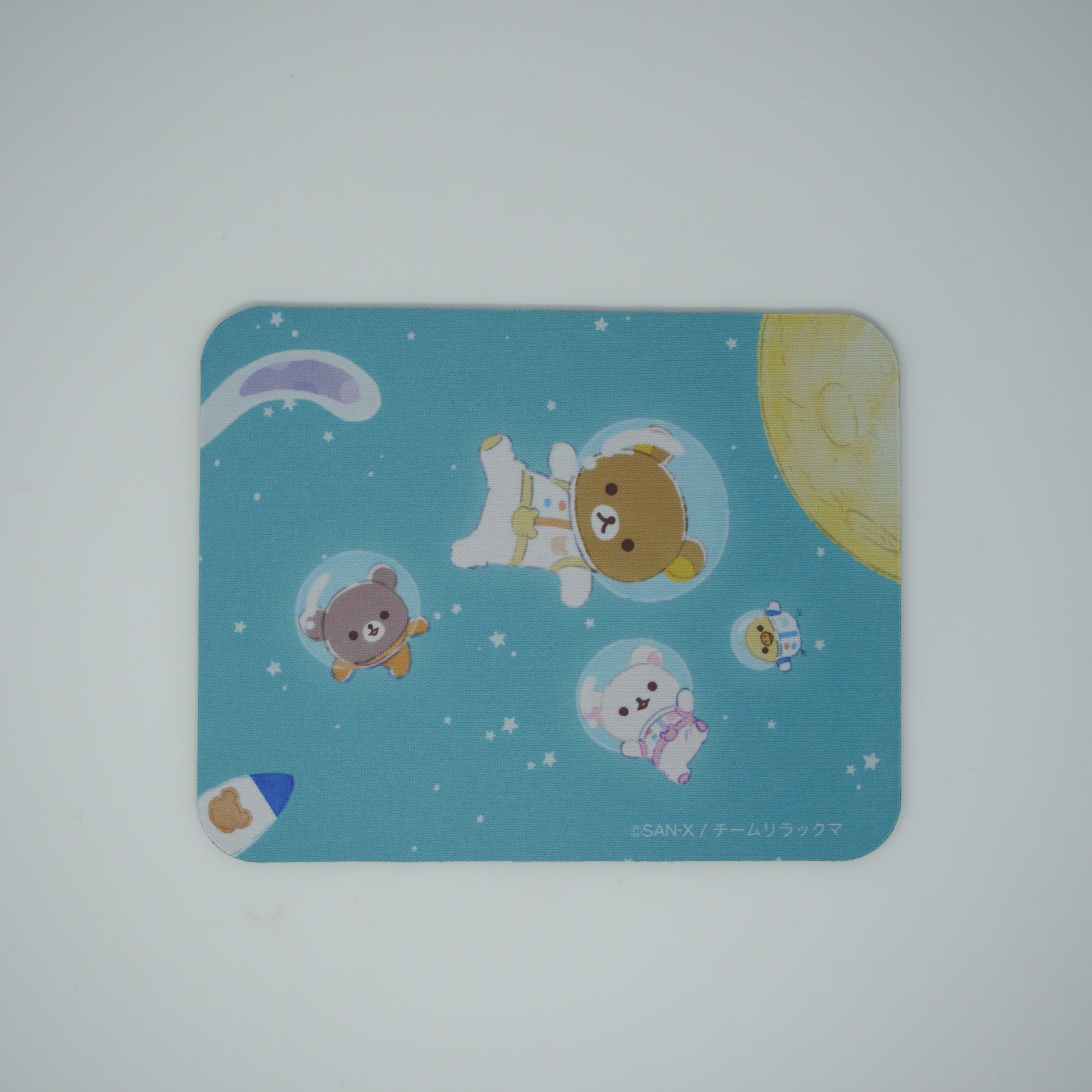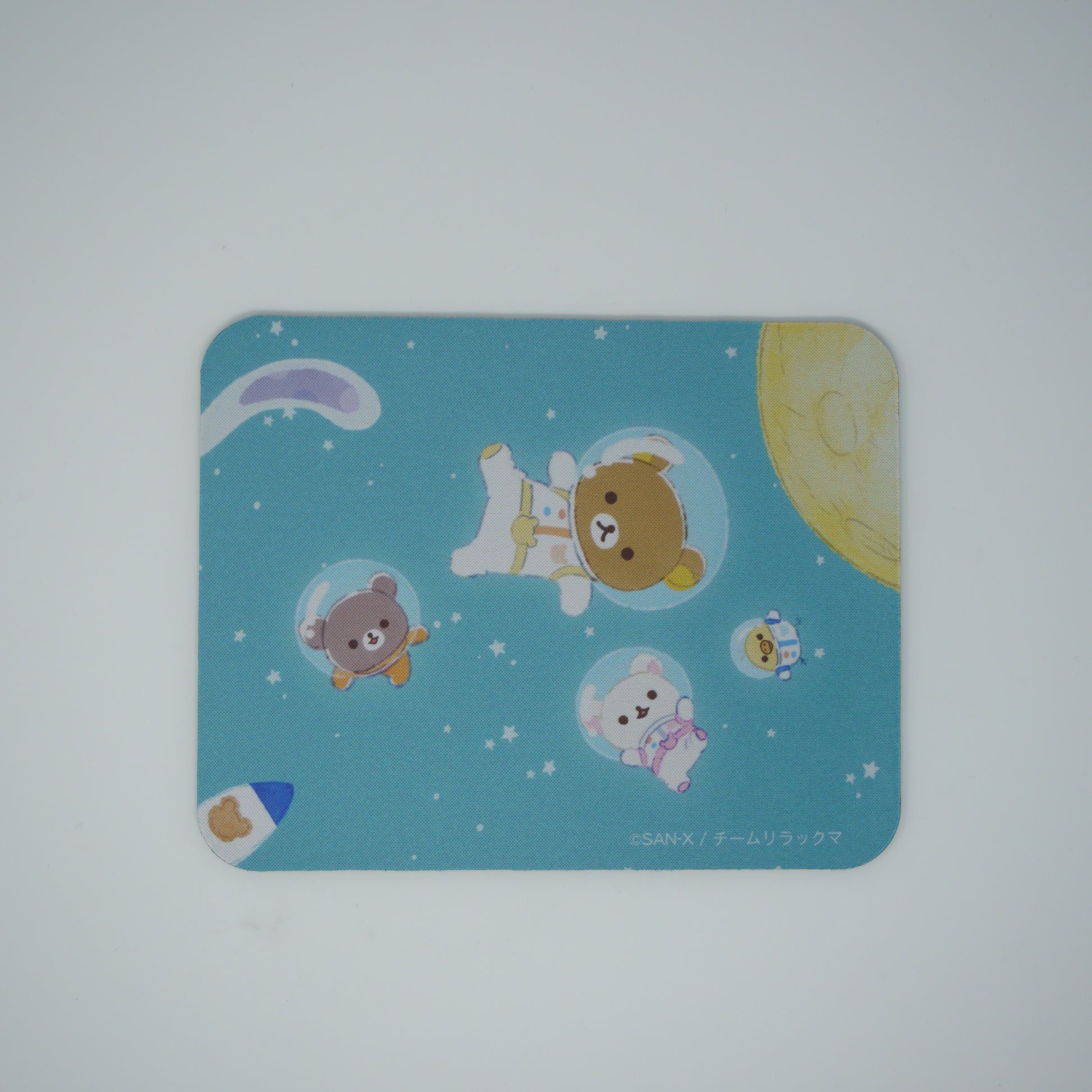 リラックマたちが宇宙に飛び出した、夢いっぱいのデザインのマウスパッドです。