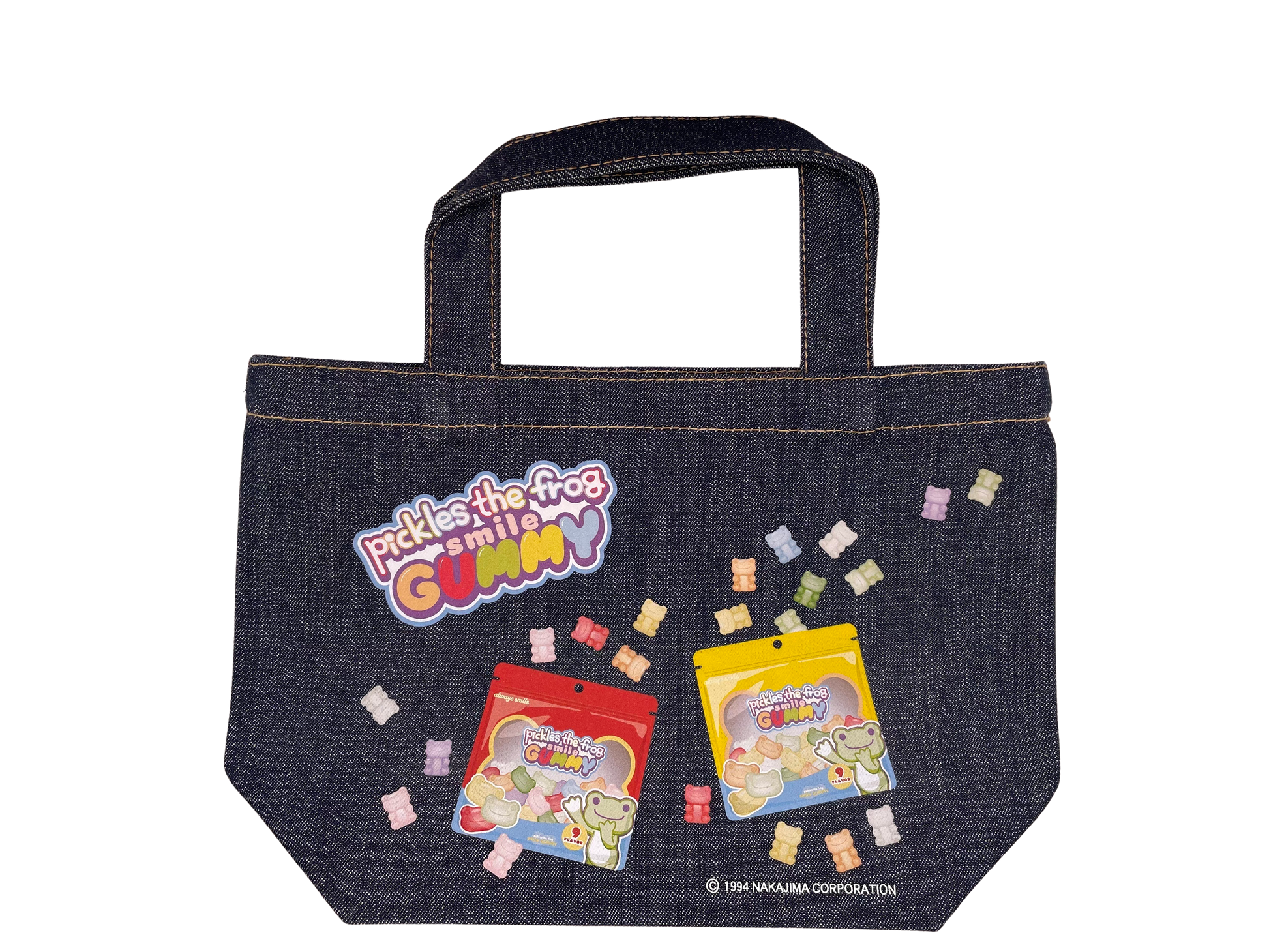 製造国:PAKISTAN 素材:綿100% かえるのピクルスのミニトートバッグです。グミ柄の可愛いデザインをデニム生地にプリント。ランチバッグやお散歩用のサブバッグにおすすめです。,POSTED